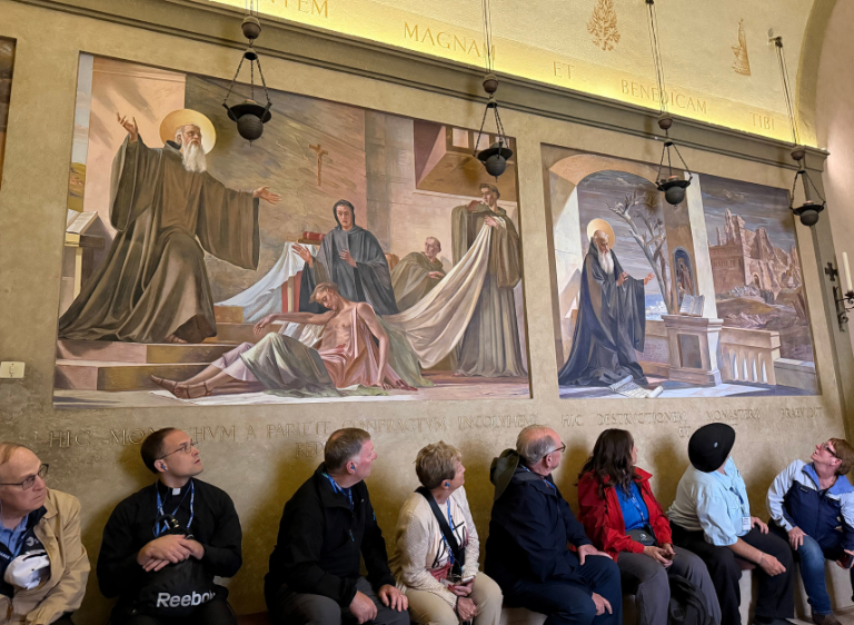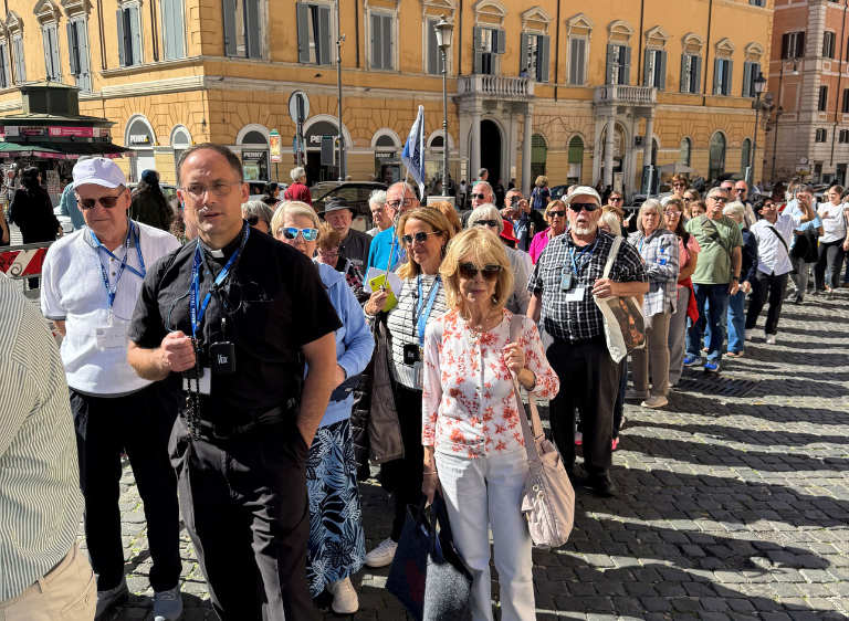 The audience with Pope Leo was a finishing touch of the pilgrimage. A very early morning and almost crushing line in the streets leading to security processing, led us to the square that on this day held upwards of 60,000 pilgrims. Bells ringing and voices celebrating in many languages heralded the pope into the square and as he rode through the audience, truly the Universal Church on display in all its glory! The pope’s remarks ensued in many languages before our group heard Pope Leo exclaim, “I extend a warm welcome to the English-speaking pilgrims and visitors,” which drew much excitement and cheering. “I encourage you to look to the Blessed Virgin Mary who is the sublime model of consecration to the Father, union with the Son and opened to the Spirit. God bless you all!” He concluded brief remarks on the theme Jesus Christ as our hope with, “Let us ask the Lord for the grace to recognize his humble presence and to accept life’s trials with joy as we await his coming in glory.”